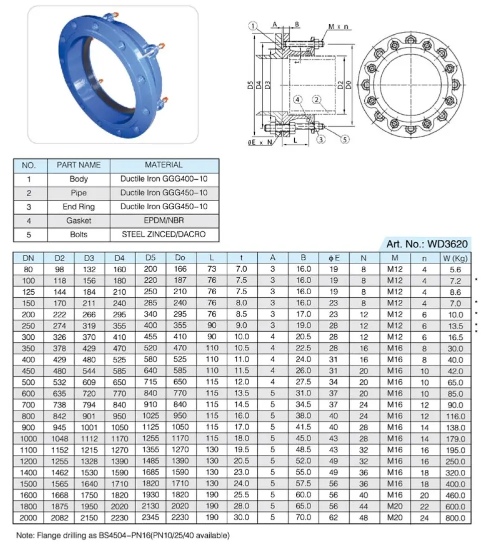 آداپتور فلنج برای لوله lron داکتیل (اختصاصی)