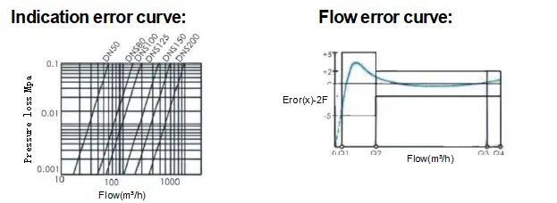 ب. هنگامی که دمای آب ≤30 ℃ است، حداکثر خطای مجاز در ناحیه بالا (Q2≤Q≤Q4) ± 2% است وقتی دمای آب >30℃ باشد، حداکثر خطای مجاز در ناحیه بالا (Q2≤Q≤Q4) ± 3% است.